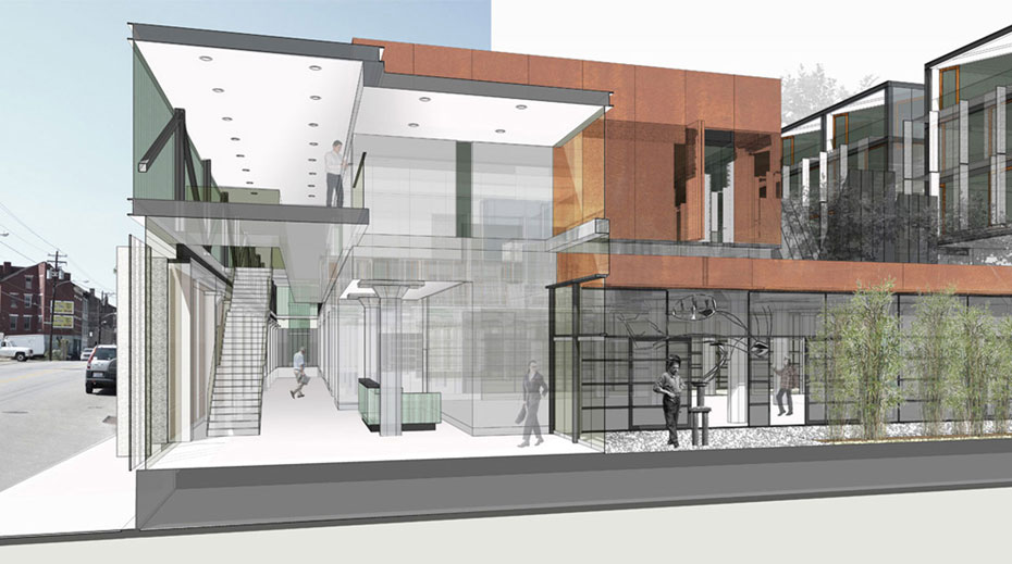 This project addresses the creative reuse of an existing industrial site on the edge of the city centre, with a radical reconfiguration of an existing warehouse building to form makers workplaces and additional housing around the perimeter to redefine its relationship to the adjoining townscape.